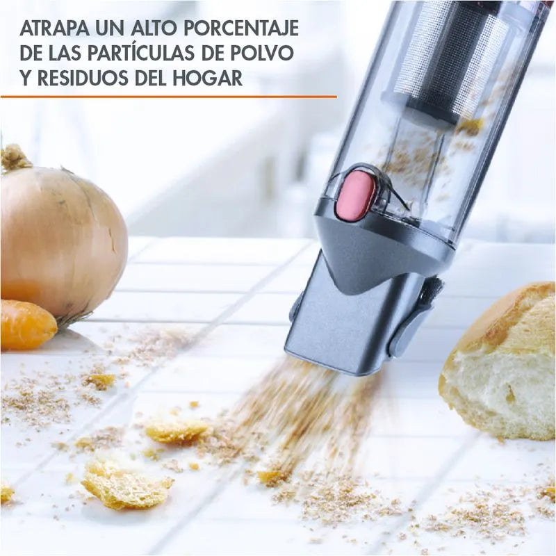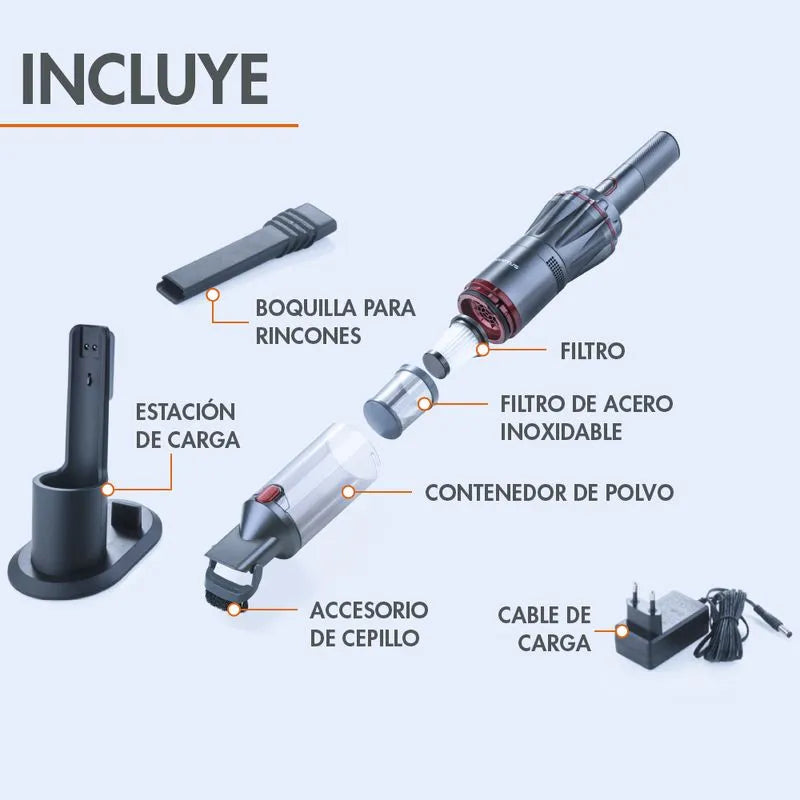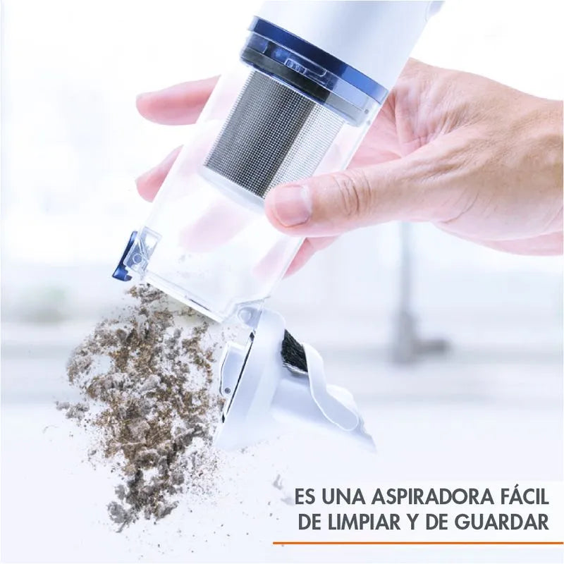 Invictus One es la aspiradora de mano e inalámbrica con un diseño delgado ideal para limpiar lugares difíciles, donde otras no alcanzan. Su diseño delgado, liviano y cabezal flexible es ideal para limpiar diferentes tipos de muebles sin necesidad de moverlos, limpiar el auto, la tapicería del sofá, entre los cojines, bajo la nevera, entre la lavadora, la secadora y los sitios más estrechos. Es una aspiradora potente de mano que cuenta con un motor BLDC de alto rendimiento para succionar perfectamente la suciedad y con tan solo presionar un botón podrás vaciarla. Ya no necesitaras más bolsas. Con solo conectarla a su estación podrás guardarla y cargarla simultáneamente.